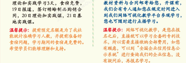 注册账号后可进入网络可视化教学平台,进入教学视频页面,可实现现场培训内容与网络同步授课,培训过程能够同步录制,供网络学员课后点播。意味着,只要与我们合作的养殖户回家后可以通过电脑免费观看现场学习的全过程,终身免费技术更新。